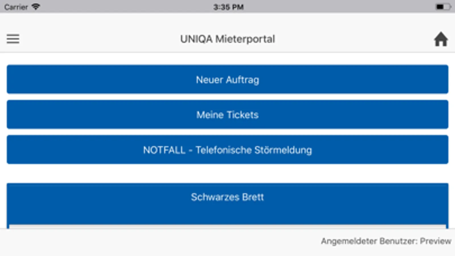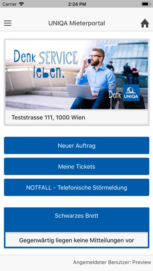 UNIQA Mieter können sich nach dem Login Aufträge erstellen und bereits erteilte Aufträge ansehen.