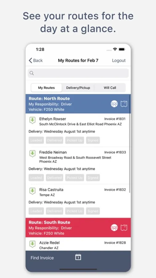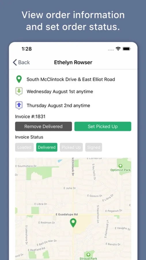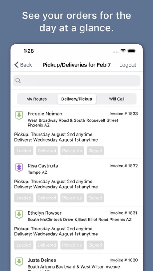 The Adelie Logistics Mobile App is a companion to the Adelie Logistics Inventory Tracker software. With the app, you can create routes, assign routes to specific employees, view your rental orders, update the status of a delivery, pick up, or will call order, view items for loading trucks for deliveries and generate digital contracts for customers to sign when accepting rental items.