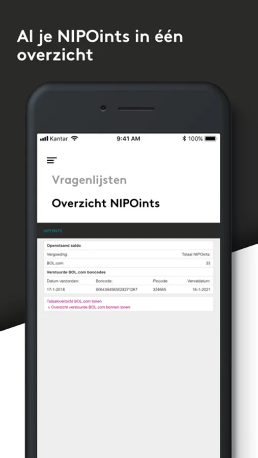 De Kantar NipoBase App is een App voor deelnemers aan NIPObase om vragenlijsten op een mobiel device in te kunnen vullen.