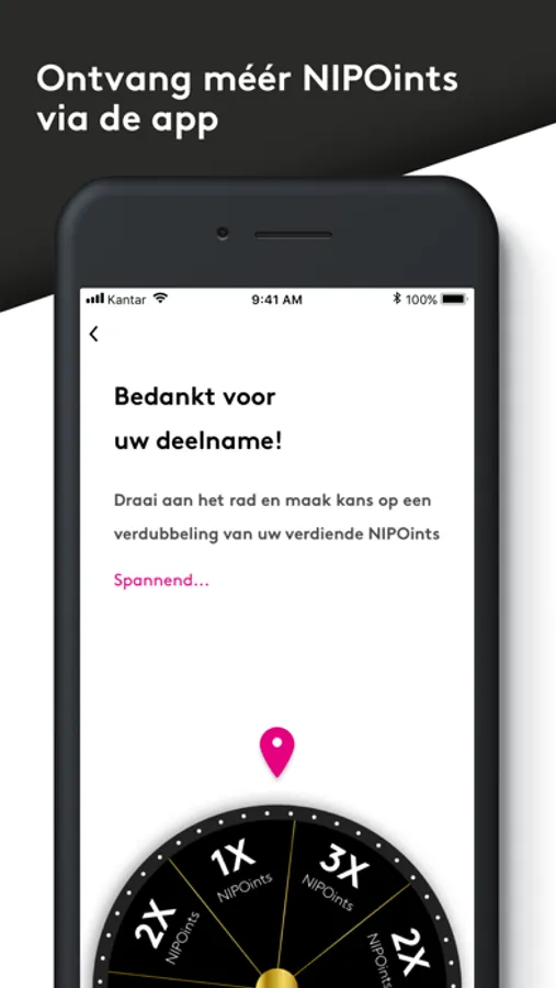* Gebruik het rad na afloop van een vragenlijst om je Nipoints te vermenigvuldigen