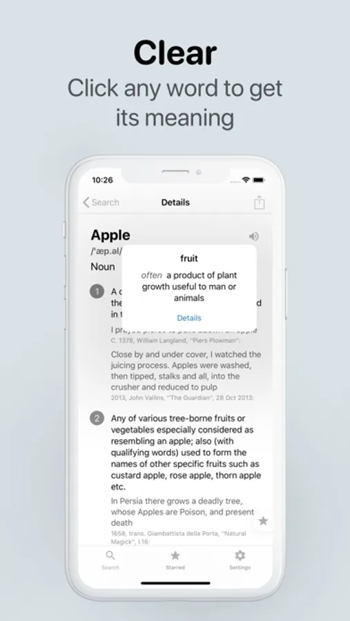 Get most useful Wiktionary reader app that supports 170 languages, allows you to see word meanings, usage examples, synonyms, antonyms, etymology and much more!