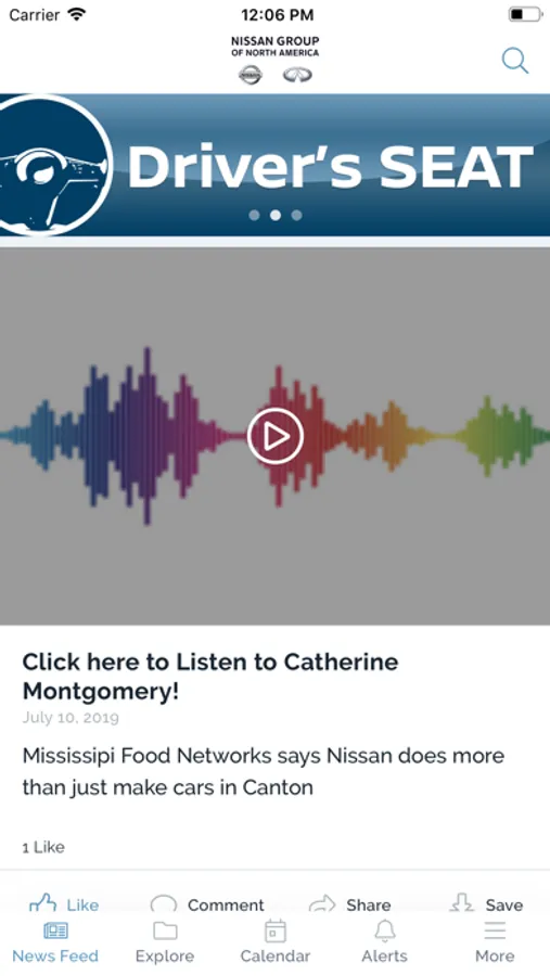 The Nissan Driver's Seat App is the official app of Nissan North America and is used for communicating important messages and news to employees and those interested in Nissan. This mobile app provides interactive features, continuously updated content and the ability to easily and constantly be in the know about all things related to Nissan North America including:
