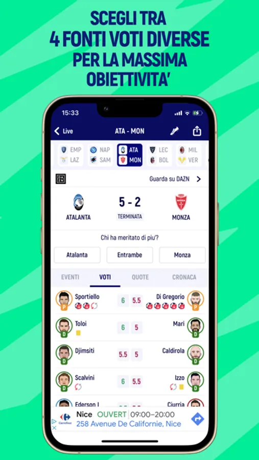 4 FONTI PER I VOTI: Voto Statistico (FantaMaster), Giornalisti (che sintetizza le più importanti testate), Milano e la novità assoluta "Voti Community" che ti permette di decidere il voto finale.