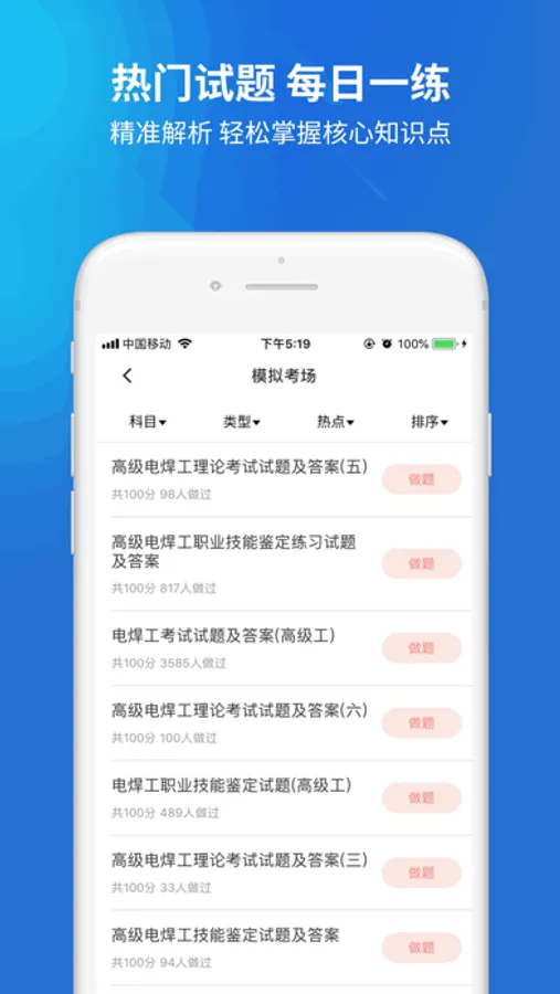 焊工考试题库新增搜题功能,焊工考试考试中的疑问一搜便知,更支持语音和拍照搜题。