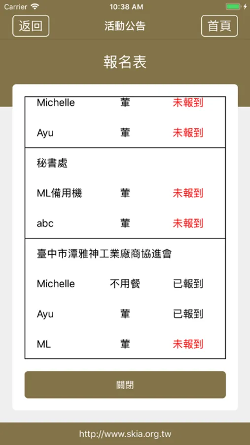 臺中市 潭雅神工協會(APP名稱)App提供了會員詳細資料,各個會員可透過此App查詢其他會員資料,功能如下