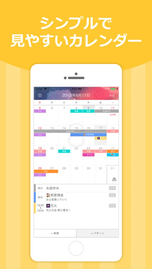 カレンダーのスケジュールを、パターンから登録できるから、入力も楽々!