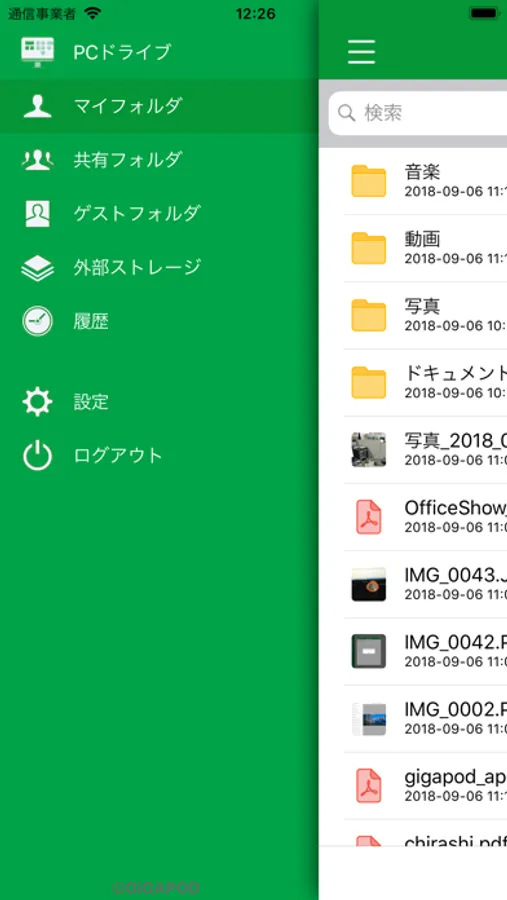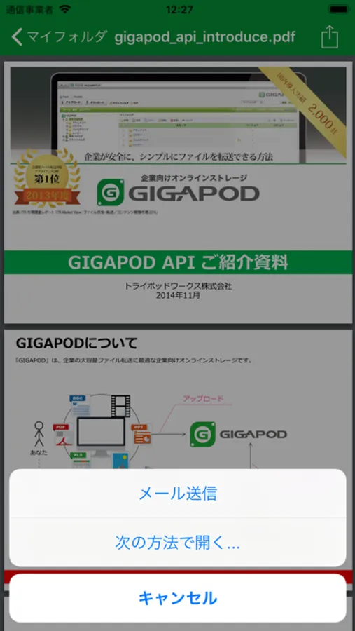 GIGAPOD5を使えば、写真や動画のアップロード、リンク生成など、GIGAPOD5に保存したファイルをiPhone、iPadからアクセスする事ができます。また、ファイルを他のアプリへ共有する事ができます。