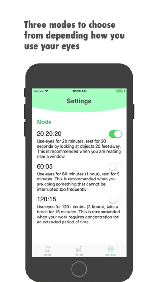 I developed this APP to promote a more healthy habit of eye usage. (Rest for 20 seconds for every 20 minutes of eye usage by looking at objects 20 feet away)