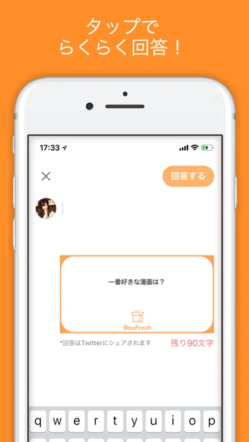 BoxFreshは質問に回答したりInstagramやTwitterなどのSNSにシェアすることができる質問アプリです