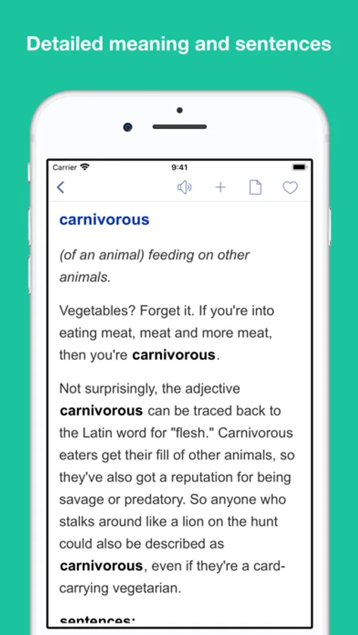 - tap highlighted vocabulary to see detailed meaning, explanation and sample sentences