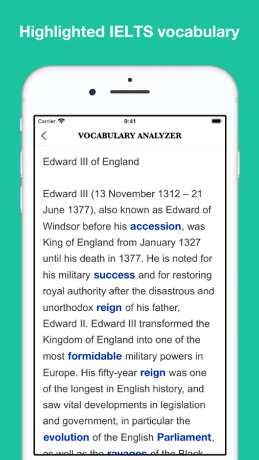 This app provides reading materials, word list and tools for you to learn IELTS vocabulary.
