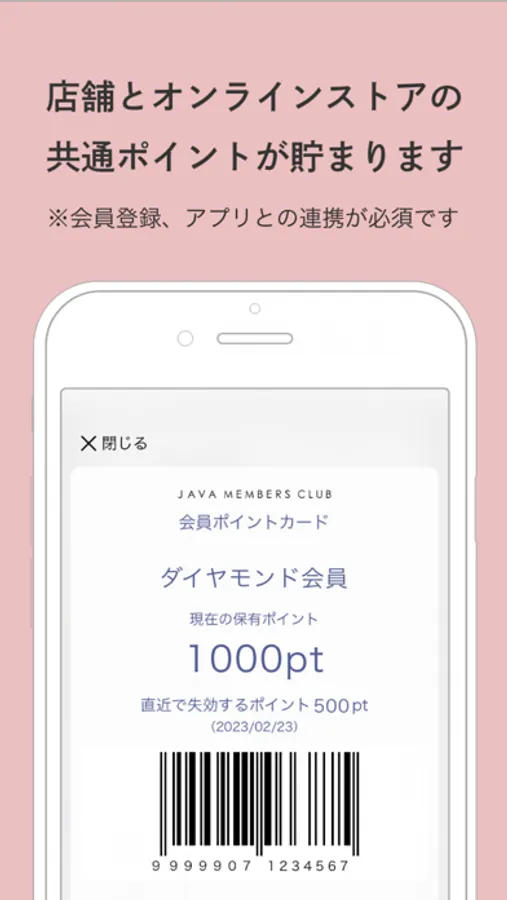 カード画面をご提示いただくだけで、かんたんに店舗とWEB共通のポイントが貯まります。