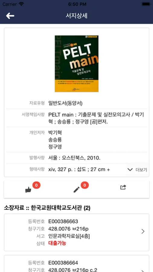 한국교원대 도서관 소장자료를 검색하여 소장의 상세 및 도서상태를 확인할 수 있으며 대출중인 자료에 대한 예약 서비스를 제공합니다.
