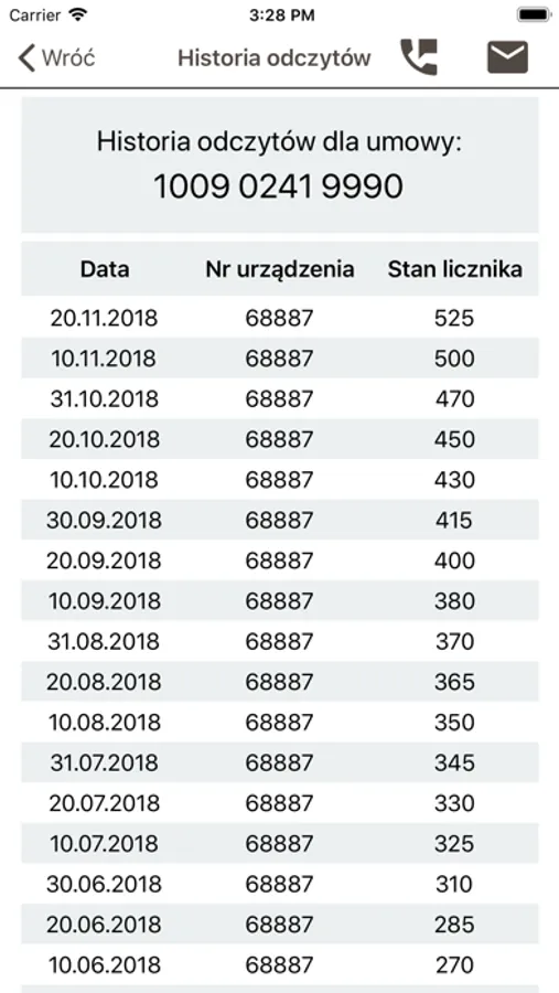- dostęp do informacji o własnym zużyciu gazu poprzez wgląd w historię odczytów gazomierzy