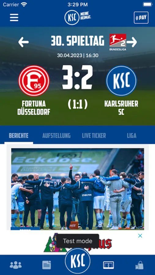 Hol‘ dir die offizielle App des KSC! Wir versorgen dich mit den aktuellen Neuigkeiten aus dem Wildpark. Mit den Push-Nachrichten bist du immer auf dem Laufenden und verpasst nichts mehr! Im Matchcenter wartet alles Wissenswerte rund um die Spieltage. Mit unserem Live-Ticker bist du hautnah mit dabei, wenn es für deinen Lieblingsverein um Punkte geht. Erlebe alle Social Media-Angebote und verpasse kein Video von unserem YouTube-Kanal „Wildpark TV“. Jetzt neu: Nutze dein Smartphone als mobiles Ticket und zum bargeldlosen Bezahlen im Stadion und im Online-Fanshop! Möglich macht dies die Integration von Bluecode in die KSC-App.