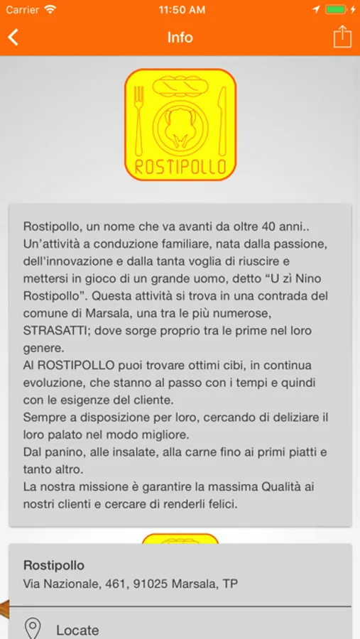 Rostipollo, un nome che va avanti da oltre 40 anni.. Un’attività a conduzione familiare, nata dalla passione, dell'innovazione e dalla tanta voglia di riuscire e mettersi in gioco di un grande uomo, detto “U zì Nino Rostipollo”. Questa attività si trova in una contrada del comune di Marsala, una tra le più numerose, STRASATTI; dove sorge proprio tra le prime nel loro genere.