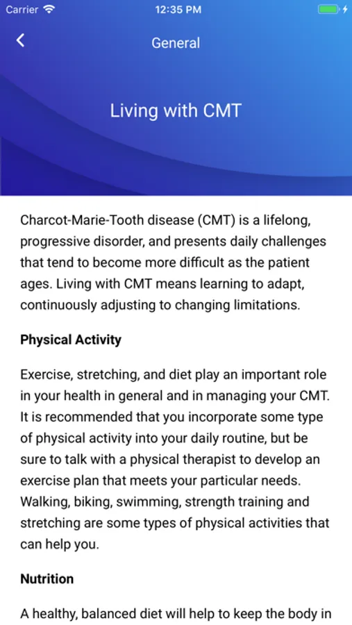If you have been diagnosed with CMT, download the CMT&Me app today to take control of your condition.