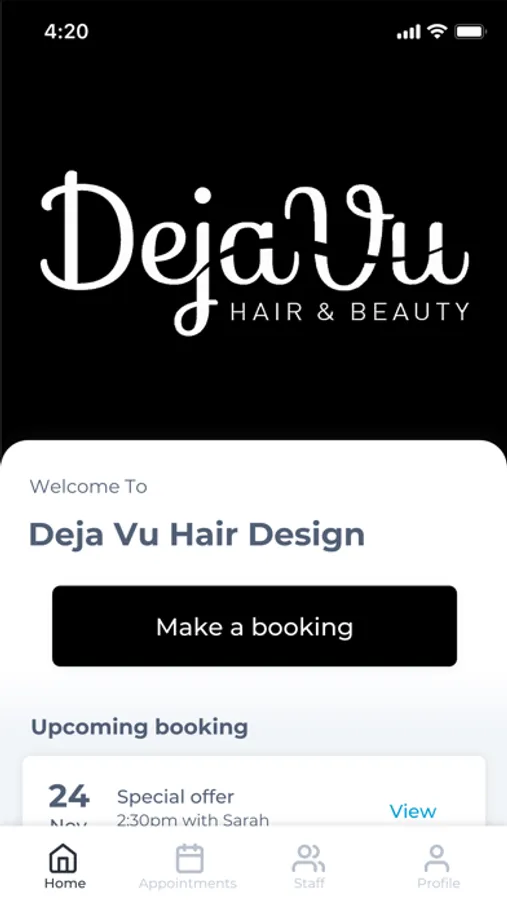 The Deja Vu Hair Design app makes booking your appointments and managing your loyalty points even easier. You're just a few taps away from feeling good and looking great!