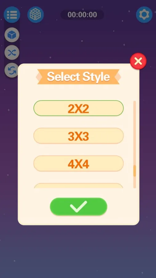 This is a Classic Rubik's Cube game. You can select level between 2 and 10. In this game you can random cube position or reset the position. You can also record the time of finishing the cubes.