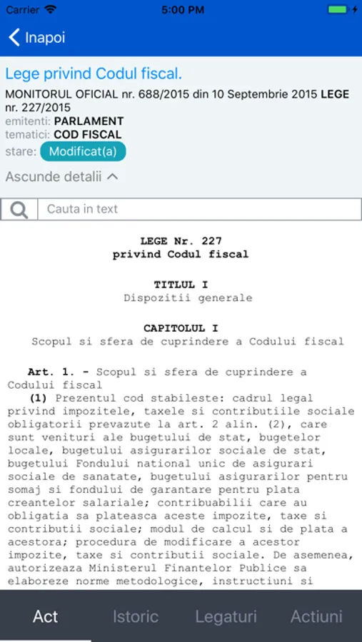 Prima aplicatie mobila pentru consultarea actelor normative publicate in Monitorul Oficial al Romaniei.