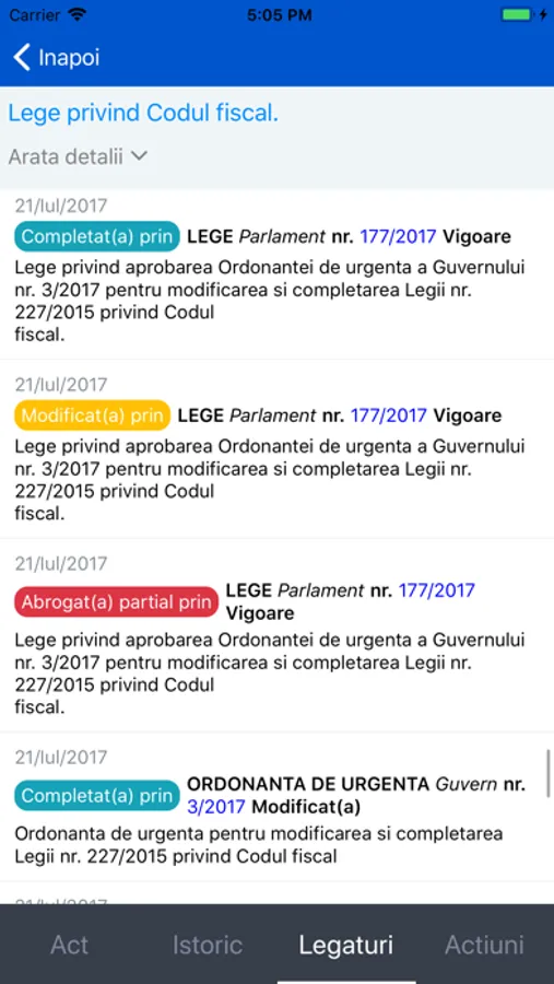Se pot accesa relatiile intre acte (modificari, abrogari, etc.)
