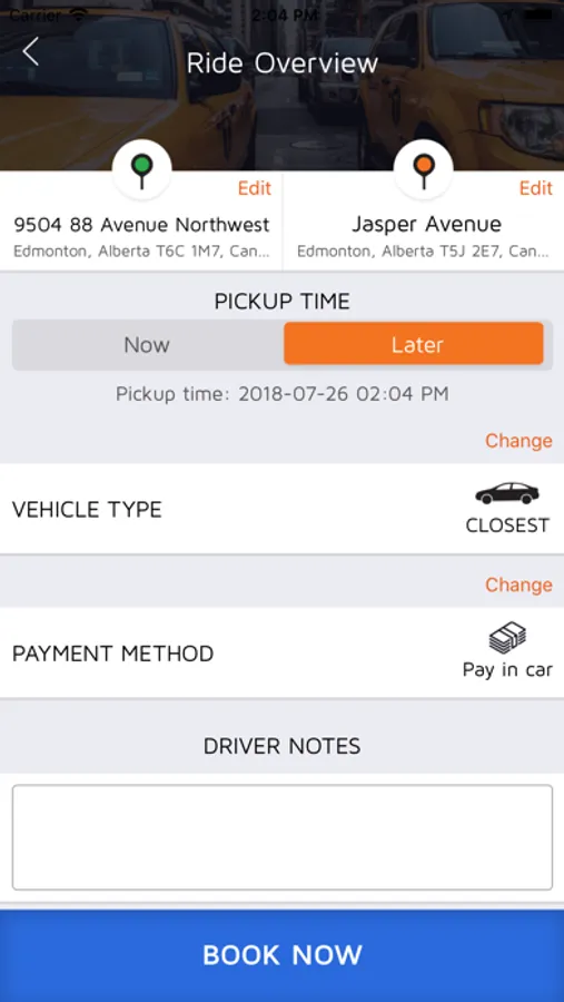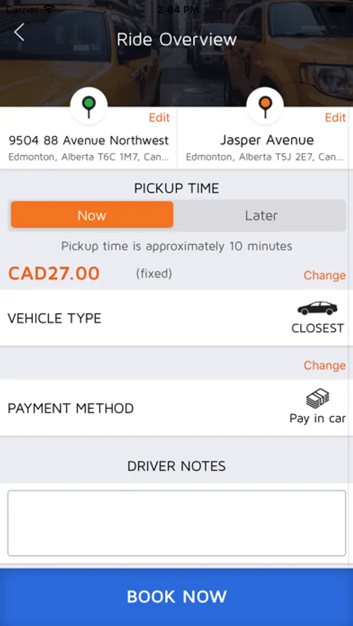 • Get a fare estimate based on the rate of your vehicle type.