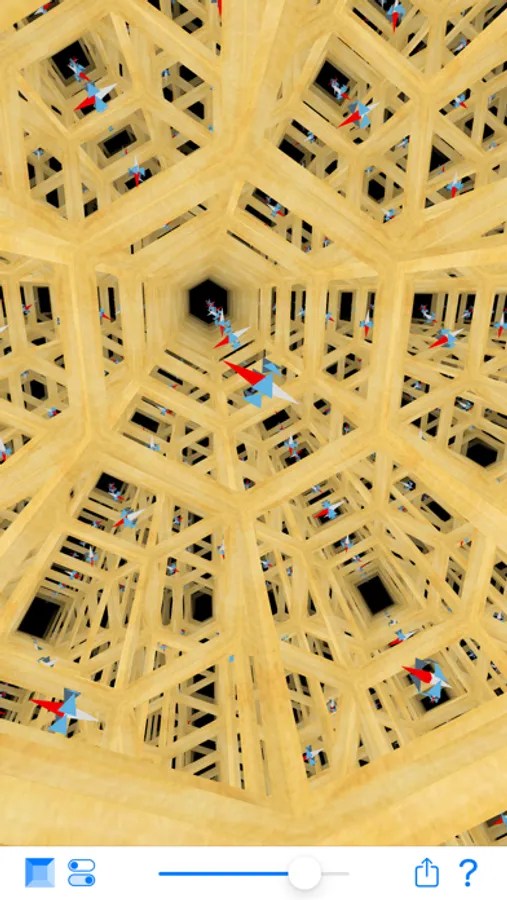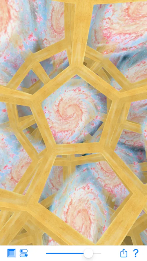 Curved Spacess is a flight simulator for multi-connected universes. Because light itself wraps around such a space, inhabitants see their universe’s contents repeating in a crystalline pattern, like a hall of mirrors but with no reflection.