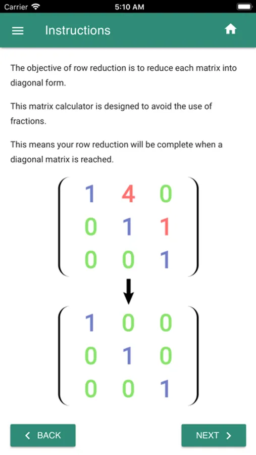 This is an educational alternative to the standard matrix calculators, which do all of the work for you and teach you nothing.