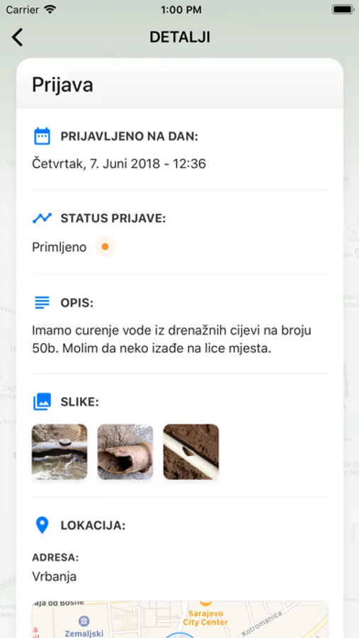 Osim opisa prijave, uz svaku prijavu možete priložiti i neophodne fotografije kao i izabrati tačnu lokaciju na interaktivnoj mapi. Ukoliko želite pratiti status Vaših prijava, možete unijeti i svoje kontakt podatke (email ili telefon).
