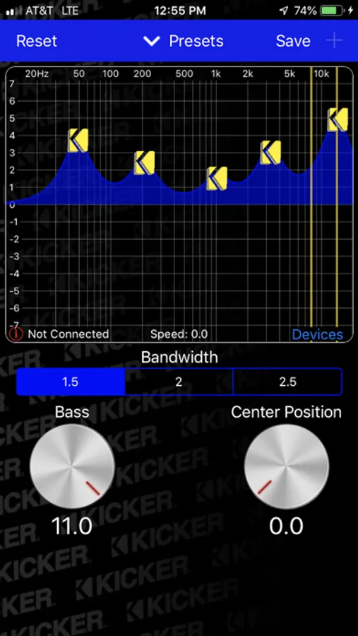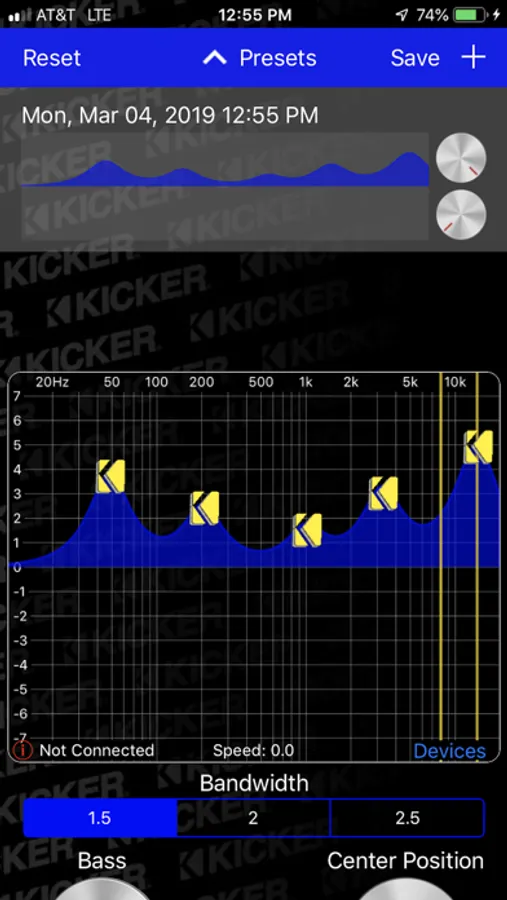 KICKER® FlexTune™ works seamlessly with your phone, tablet and your new KICKER audio system to personalize your sound. Increase the clarity? No problem. Want more KICKER bass? Turn one knob. Easily tweak the audio with a touch of the graphic five-band equalizer, right from your phone or tablet screen.