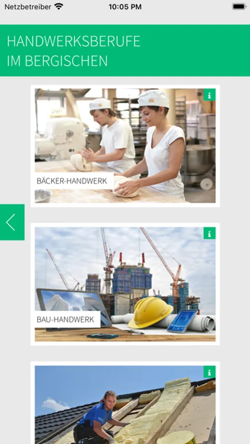 Berufe-Checker: Welcher Handwerksberuf passt zu dir? Du arbeitest gerne mit Stoffen oder Holz? Das Tüfteln mit Elektronik ist dein Ding? Kreatives Arbeiten mit Lebensmitteln oder Metall macht dir Spaß? Egal welche Interessen du hast: Im Handwerk kannst du sie erleben. Über 30 Ausbildungsberufe im Handwerk in der Region (Oberberg, Rhein-Berg und Leverkusen) warten auf dich! Wir sind uns sicher – auch für dich ist der passende Beruf dabei! In dieser App stellen wir dir sehr viele Ausbildungsberufe vor. Hier erhältst du mit kurzen Texten, Videos und Fotos eine sehr gute Übersicht, welche Berufe auf dich warten. In der App gibt es auch eine Übersicht über Praktikaplätze und freie Ausbildungsstellen. Viel Spaß beim Durchschauen!
