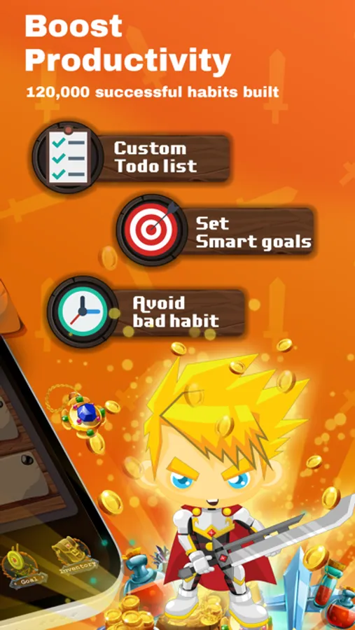 + It will turn your goal, habit, and task into an RPG game. In the game, you'll become a hero finding ways to win monsters and save people. The more task you complete in your real life, the stronger the hero will be.