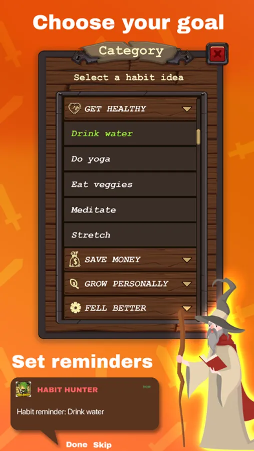 Habit Hunter (Or Goal Hunter) is a free app that helps you create and track your habits & goals effectively. Habit Hunter uses a special technique, called Gamification, which will give you unlimited motivation to continue doing your real-life habits without any boring moments.
