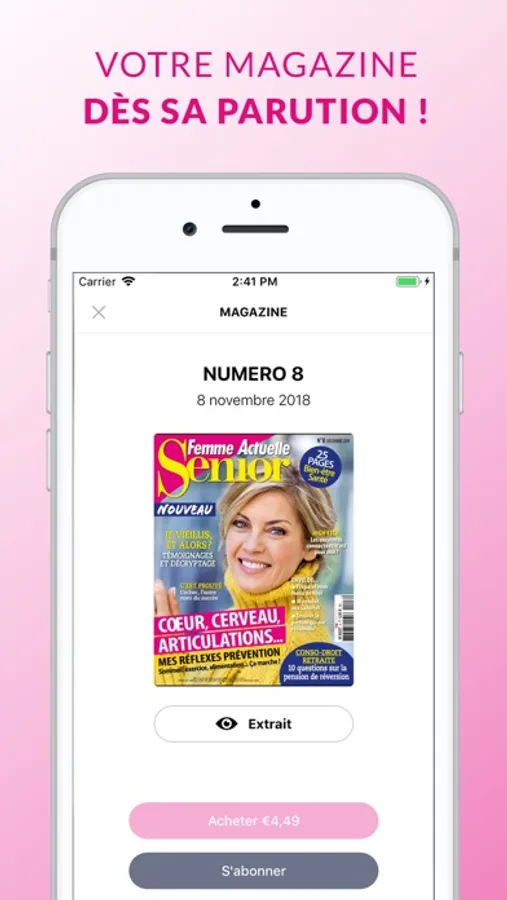 Si vous êtes déjà abonné, connectez-vous directement sur “mon compte prismashop” depuis l’application et retrouvez tous vos numéros de Femme Actuelle Senior en version numérique.