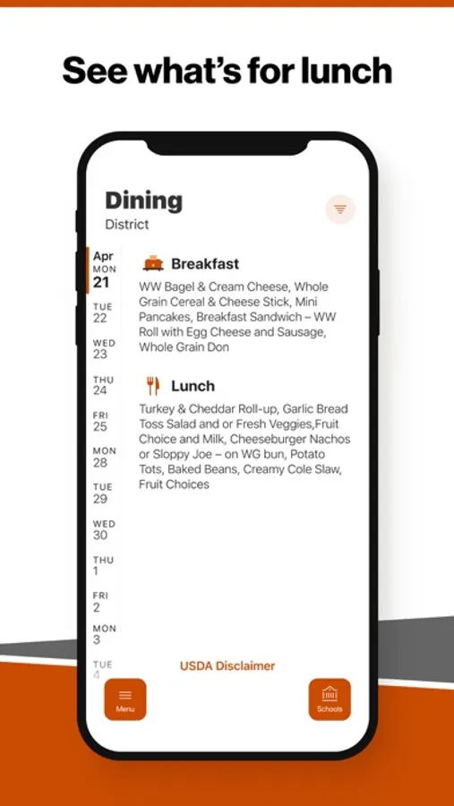 Within the dining section, you’ll find an easy to navigate, weekly menu, sorted by day and meal type.
