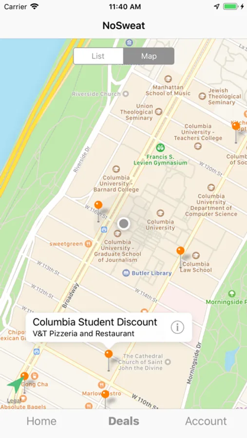 Again, NoSweat uses your location *only* to send you nearby discounts of interest. That's it, nothing else.