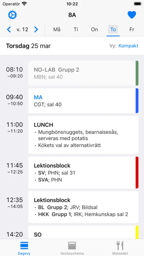 Skolschema är appen för dig som är trött på att behöva gå in på webbläsaren och navigera till schemasidan varje gång du vill kolla schemat; här är det bara att öppna appen så dyker ditt schema upp. Du kan enkelt växla vecka via flikmenyn, och till och med se vad det är till lunch om det stöds för din skola.