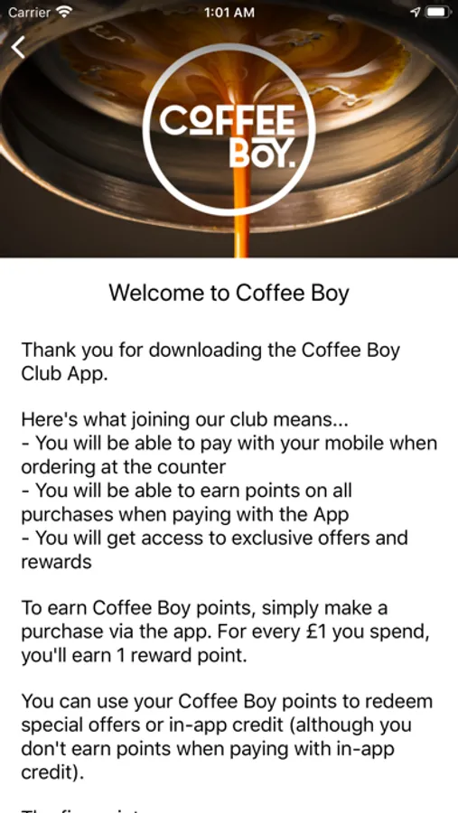 The Coffee Boy app will make the most of your in-store experience, allowing you to pay through your mobile via
