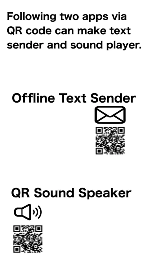 *1 To create QR code from some text other than URL, the other APP, titled “Offline Text Sender” is recommended.