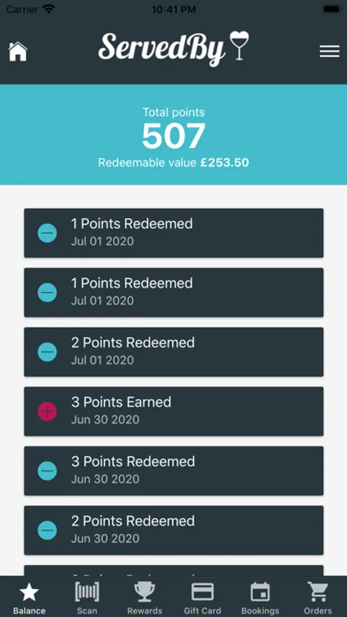 Redeeming your reward points and your gift card balance is easy! Just have the server scan the code on the app when paying for your meal.