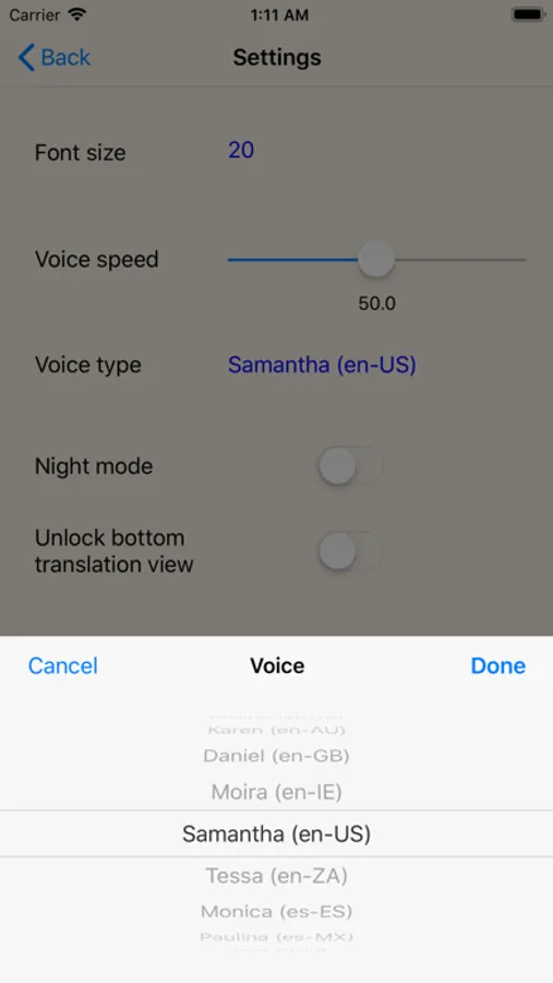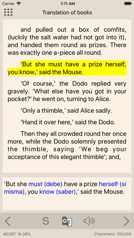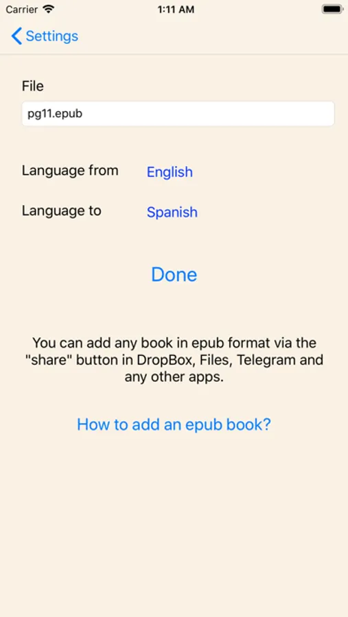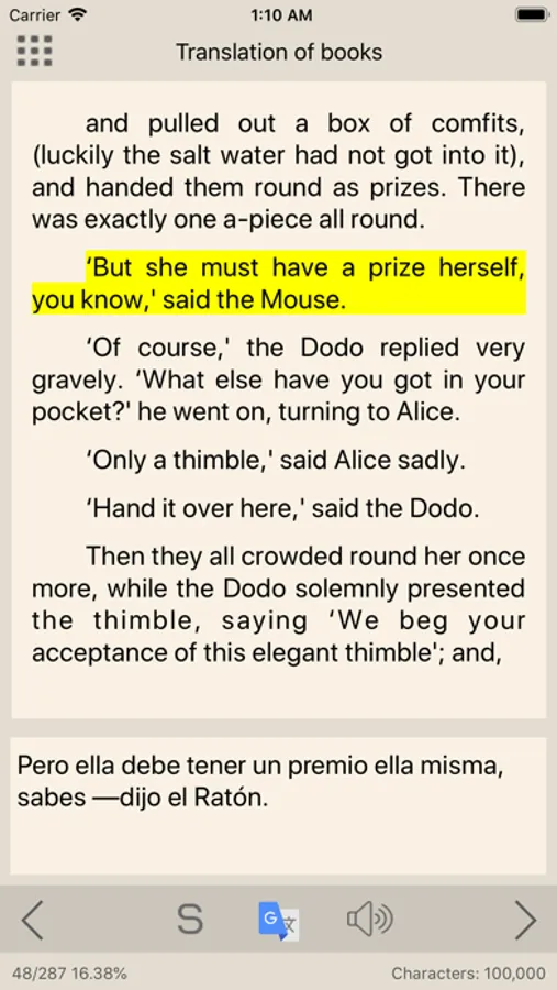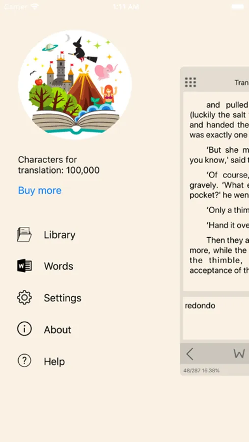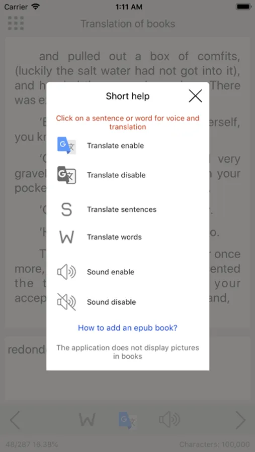 You can easily read books in foreign languages. When you click on a word or a sentence, you hear their pronunciation and see the translation. You can choose yourself books and texts for reading. The app supports epub books and html pages (text only).