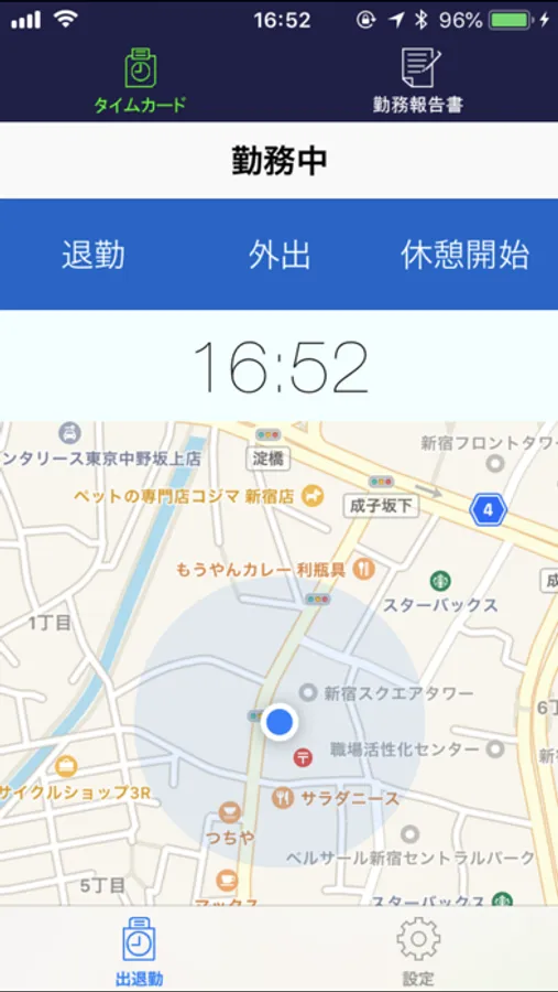 ・出勤、退勤、外出、休憩のステータスの変更が出来ます。