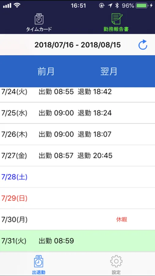 ・ご自分の過去の出退勤情報を一覧で見ることが出来ます。