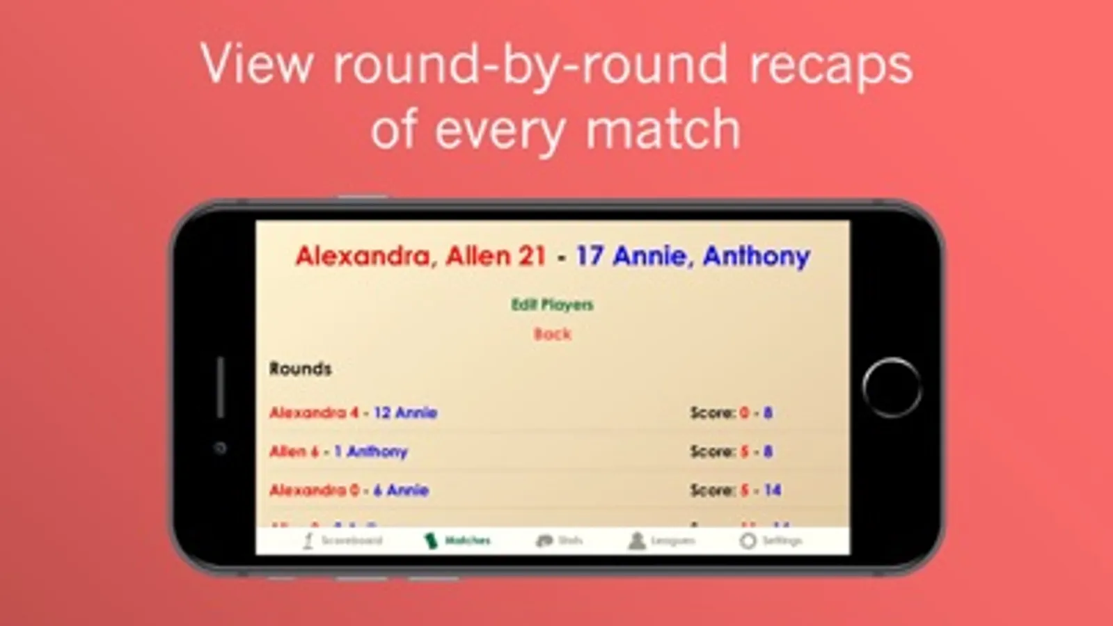 — Score singles and doubles matches using official cancellation scoring on a scoreboard that's easy to use and built to display on both iPhone and iPad