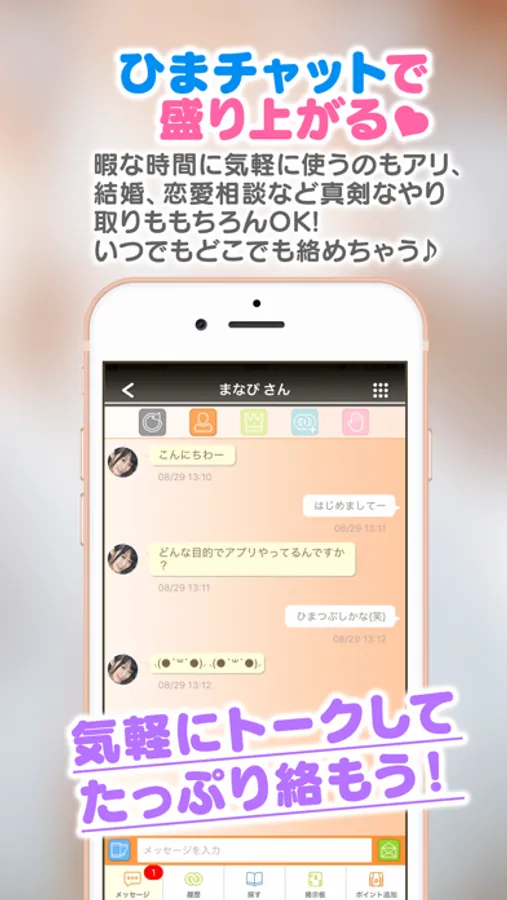 いつでも、どこでもユーザーと絡めるチャットアプリです。