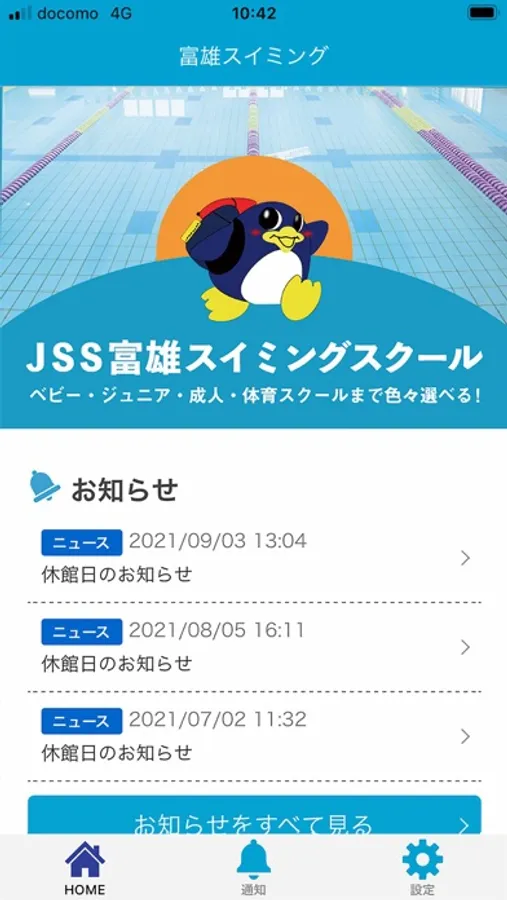 通知機能で、天候などによる急な臨時休業も通知ですぐに確認できます。