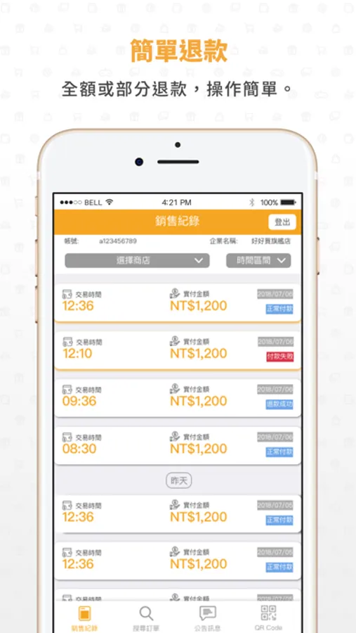 【簡單退款】介面簡潔,多種退款方式,簡易操作。