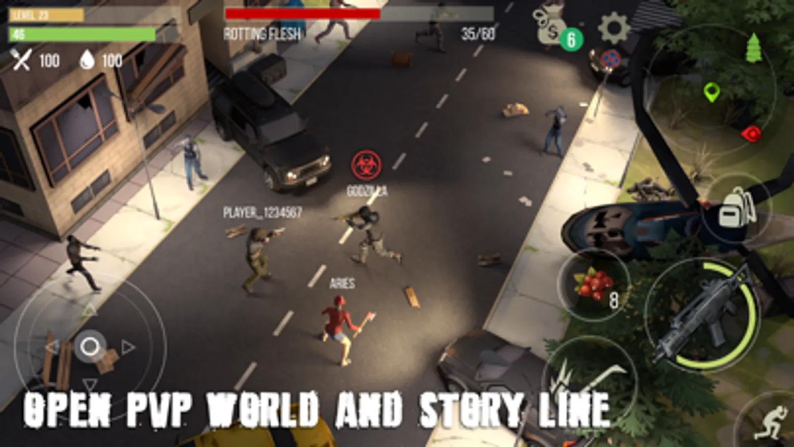 Enter into confrontation with other survivors, greedy for the loot you carry. Unite with other players in online zones to fight back zombies and other players hiding in the streets hunting for easy prey. Gather your friends to go together to the most dangerous parts of the City.