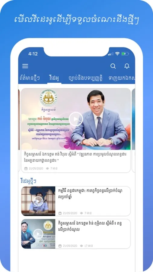 GDT News App provides latest news about General Department of Taxation such as law, sub-decree, Prakas... and others related announcements.