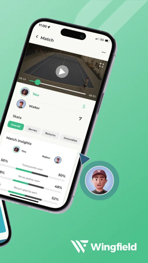 The virtual tennis experience: Wingfield brings Grand Slam feeling directly to your club. Measure your skills, track your progress and compare yourself with players from all over the world in interactive challenges. Thanks to detailed match reports and automatically created highlight videos, you can experience the full fascination of smart tracking technology.